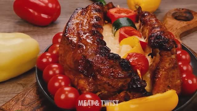 Свиные ребрышки - 2 кг Чеснок - 2 зубчика Соевый соус - 50 мл Сладкая паприка - 20 г Специи для мяса - 20 г Бальзамический уксус - 30 г Соус барбекю - 50 г Мед - 50 г Выпекать 180 °C / 80 минут. Сладкий красный, желтый перец - 150 г Кабачки - 50 г Оливковое масло Соль, перец Обжарить в течение 2 минут. Картофель - 400 г Сладкий картофель. - 100 g Сливки 20% - 50 мл Семена горчицы - 50 г Сыр Чеддер - 150 г Помидоры черри - 200 г Каждый день радуем Вас полезными и вкусными видеорецептами! Мы на YouTube: https://youtube.com/@MeatTwist?si=hPRJD5RSmwSE6xFh Мы на ДЗЕН: https://dzen.ru/meattwist?share_to=link