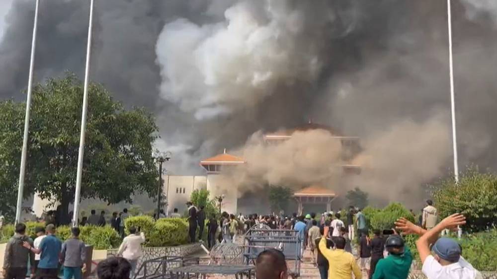 Участники беспорядков в Непале подожгли здание парламента