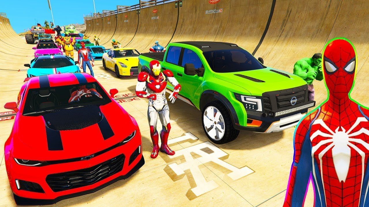 ЧЕЛОВЕК-ПАУК Супер Гонки на спортивных машинах на Мега Рампе! СУПЕРГЕРОИ на гоночных автомобилях!