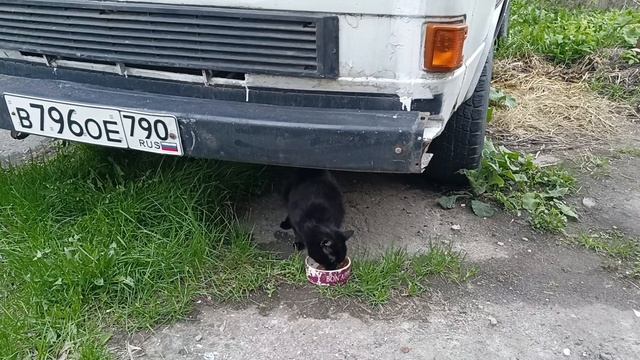 Накормил бездомную кормящую кошку.