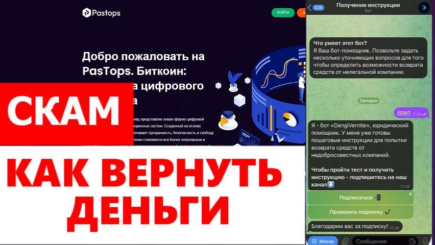 Обзор криптокошелька PasTops (pastops.com), реальные отзывы. Это очередной кошелек мошенников? Как можно вернуть свои деньги? Если вы стали жертвой финансовых мошенников: брокеров, казино, подставных криптобирж или купили онлайн-курс, который не оправдал ожиданий, свяжитесь со мной в телеграме https://t.me/DengiVernite