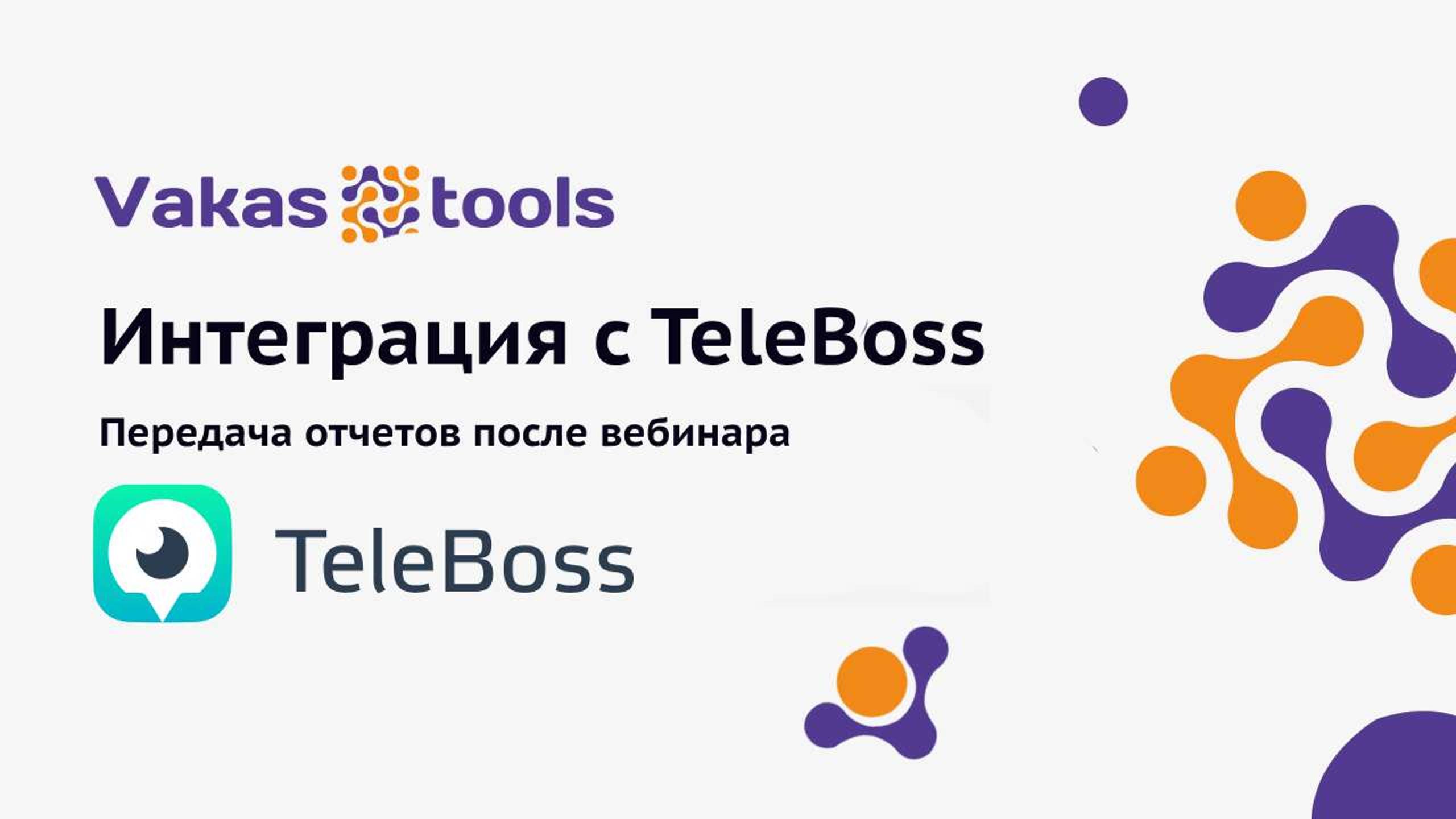 Teleboss - сервис видеосвязи для инфобизнеса. Выгружать отчеты в интегратор Vakas-tools для последующей передачи в crm-системы, сервисы рассылок и т.д. Функционал описан на тариф Базы. Сервис Vakas-tools - инструмент для интеграции, который поможет вашей онлайн-школе автоматизировать работу и сосредоточиться на основных бизнес-процессах, избавляя вас от необходимости в ручном выполнении рутинных задач. Подробности на https://vakas-tools.ru/g/rutube/