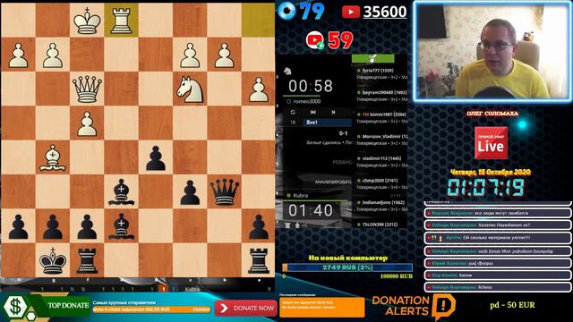💲 ОСНОВНОЙ ДОНАТ - (КИВИ ДОНАТ) - http://bit.ly/qiwisolo 💲 ПОДДЕРЖКА СТРИМА - (ДОНЭЙШН АЛЕРТС): http://bit.ly/donatchess 💲 STREAM SUPPORT (STREAMLABS): http://bit.ly/Streamlabschess 💥ДОСТУПНЫЕ ДОНАТЫ: 📌50-99 рублей - минимальный донат. "Просто уделал" 📌100-199 рублей. "Мат или режим тюленя" 📌200-299 рублей. "Купил книгу Немцева" 📌300-499 рублей. "Дискотека" 📌500-999 рублей. "Карлсен рэпер" 📌1000-1999 рублей. "Барбара Стрейзанд" 📌2000-4999 рублей. "О-ЛЯ-ЛЯ" 📌5000 рублей - максимальный донат. "Карлсен поет гимн" ♟Профиль стримера на Личесс: https://lichess.org/@/Kubra Игроки со знаком вопроса ? рядом с ником в игру не принимаются! ▰▰▰▰▰▰▰▰▰▰▰▰▰▰▰▰▰▰▰▰▰▰▰▰▰▰▰▰▰▰▰▰▰▰▰▰▰▰▰▰▰▰▰ Продолжительность стрима - 2 часа. При хорошей активности (много зрителей, лайков, донатов) - продлевается по настроению стримера. Приятного просмотра! ▰▰▰▰▰▰▰▰▰▰▰▰▰▰▰▰▰▰▰▰▰▰▰▰▰▰▰▰▰▰▰▰▰▰▰▰▰▰▰▰▰▰▰ 💖Становитесь спонсором канала: http://bit.ly/Sponsorchess ⚡Вступайте в клуб на Личесс: http://bit.ly/lichesskubra © Скачивайте программу для стрима Streamlabs OBS, поддерживайте стримера и покоряйте Интернет: http://bit.ly/programstreamlabs ⚠ ПРАВИЛА ДЛЯ МОДЕРАТОРОВ: https://yadi.sk/i/-9d_6GVkK1x0tA ПРИЯТНОГО ПРОСМОТРА! В ЧАТЕ РАБОТАЮТ РОБОТЫ. КОМАНДЫ ДЛЯ БОТОВ: 💡 БОТ Rutony: !level - узнать свой уровень в чате !time - узнать сколько времени ВЫ на стриме !sub, подписка, лайк - подписка на канал ---------------------------------------------------------------------------------------------------------------------------------------------------- 💡 БОТ Nightbot: !rasp- Расписание стримов на текущий месяц (не работает) !donate - Пожертвование каналу !solo - Подписка на канал !live - Подписаться на второй live канал !vk - Вступить в группу Вконтакте ▰▰▰▰▰▰▰▰▰▰▰▰▰▰▰▰▰▰▰▰▰▰▰▰▰▰▰▰▰▰▰▰▰▰▰▰▰▰▰▰▰▰▰ ✔Подписаться на канал: http://goo.gl/ti2Yk8 ✔Подписаться на второй канал Блиц и Этюды: https://goo.gl/APq1kW Подписывайтесь на мои другие соц.сети: 🅱 Контакт - https://vk.com/solo170885 🆗 Одноклассники - https://ok.ru/oleg.solomakha1 ⏸ Твиттер - https://twitter.com/solo170885 🆔 Facebook - https://www.facebook.com/oleg.solomakha ⏺ Инстаграмм - https://www.instagram.com/solo170885/ ---------------------------------------------------------------------------------------------------------- Multistreaming with https://restream.io/?ref=YonW Support the stream: https://streamlabs.com/solo170885