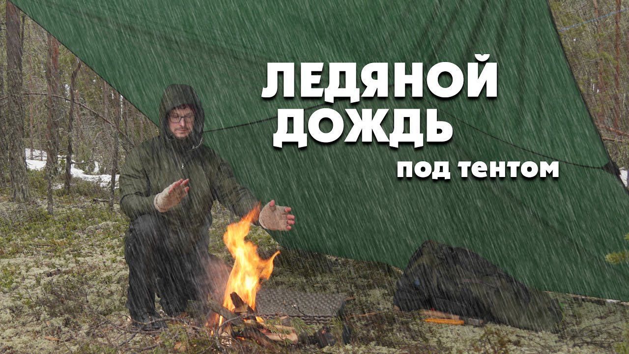 Первый раз вижу! Ледяной дождь в лесу под тентом