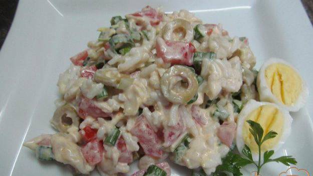 Салат с рисом овощами и рыбой