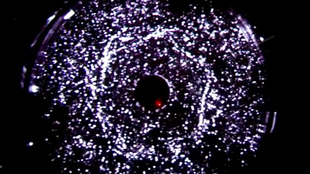 An unusual hexagonal structure found in Saturn's atmosphere has been recreated in an Oxford laboratory. The mysterious 'hexagon' occurs at the planet's chilly North Pole and has been shown to extend deep into Saturn's atmosphere with a 'hotspot' at its core. In new work published in Icarus, Peter Read and Ana Aguiar of Oxford University's Department of Physics have investigated the ways in which such an unusual polygonal structure may have formed. They did this with experiments using a water tank filled with a solution of water and glycerol peppered with white 'tracer' particles. This tank was then mounted on a turntable and lit in such a way that the solution's flow at various speeds could be captured on camera. 'The video above shows the development of a flow produced when a disk or ring mounted in the base or lid of the tank is set into rotation relative to the rest of the tank,' Peter Read explains. 'This differential rotation carries the fluid along with it to create a shear flow in which the azimuthal flow varies with radius. It crudely represents the shear found on the flanks of the eastward-moving jet stream on Saturn at around 76 degrees North, with around the same magnitude of shear compared with the background rotation as on Saturn itself.' He tells me that this flow is unstable and spontaneously develops meanders and vortices that eventually form a six-sided pattern that settles into a hexagonal shape - something made clear by the pattern of tracer particles. 'The formation of such a steady, symmetrical pattern, slowly drifting around a tank, seems to be directly analogous to what appears to be happening on Saturn itself on a scale of thousands of kilometres,' Peter adds. The experiments demonstrate that at least one possible end-product of such an instability is the production of a steady, polygonal shape that calculations suggest could also occur on Saturn. 'While this does not prove that Saturn's hexagon definitely occurs via the same processes as in our experiments, it does demonstrate that it could do so, and suggests other things for scientists to look for that may help to improve our understanding of Saturn's atmosphere.' credit: Oxford University source: http://www.ox.ac.uk/media/science_blog/100416.html