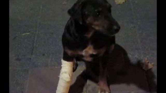 I found this stray dog on the streets of Belgrade, Serbia. He has a wounded paw, and someone seems to have created this make-shift cast. The dog is now without a cast, but he's still limping. If you're interested in rehoming this dog, send me a message. Thank you.