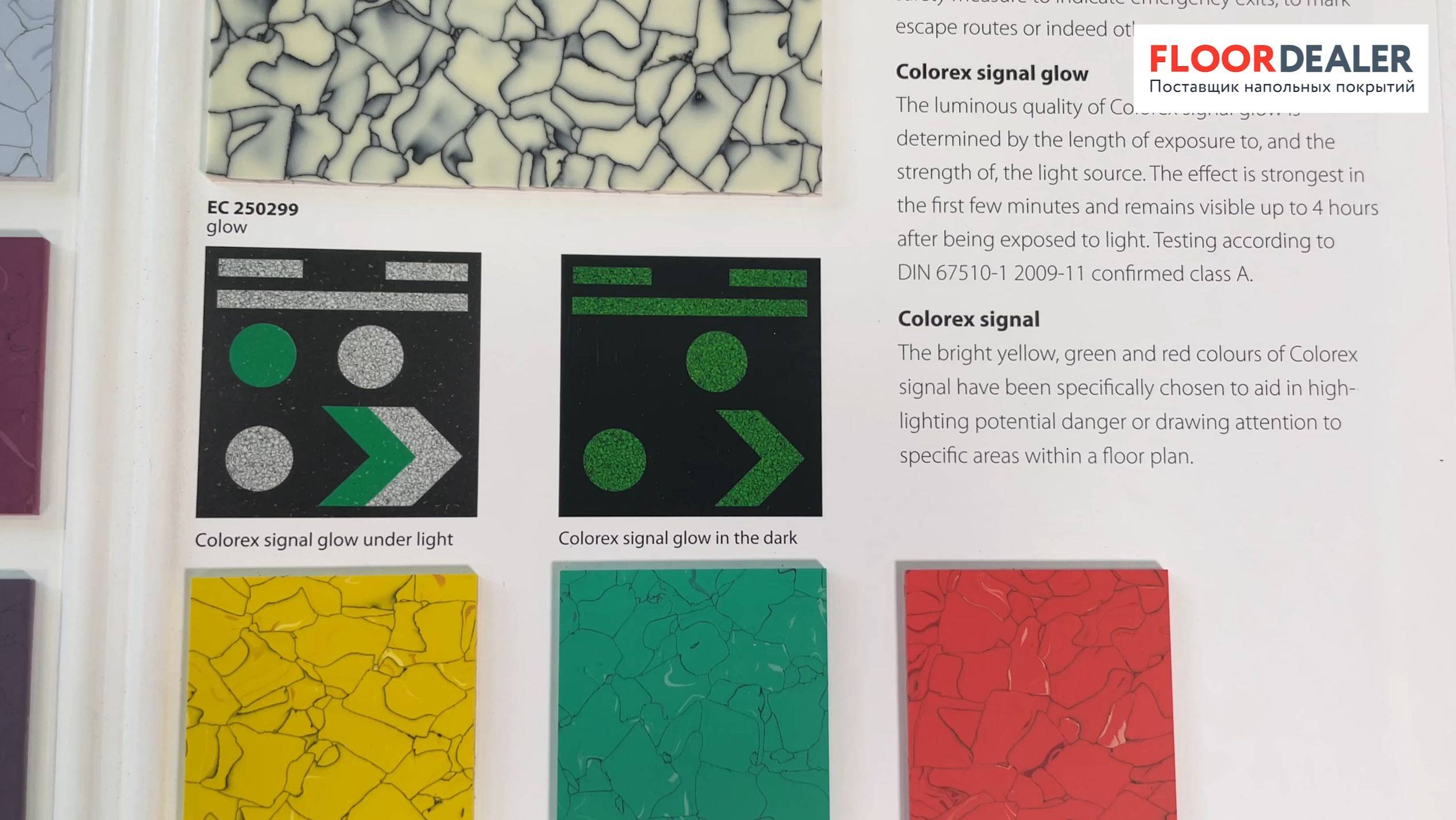 Токопроводящая виниловая плитка от известного производителя напольных покрытий Forbo. Это гомогенное покрытие, по всей толщине которого находятся токопроводящие гранулы, обеспечивающие постоянный и надежный отвод статического электричества. Такое покрытие подходит для фармацевтических компаний, лабораторий, чистых помещений и производств. Плитка рассчитана на высокие нагрузки, не боится влаги, устойчива к воздействию химикатов и тяжелого оборудования. Вариации: ► SD – статически-рассеивающая: https://www.floordealer.ru/catalog/kvarcvinil/collections/forbo-colorex-sd/ ► EC – электропроводящая: https://www.floordealer.ru/catalog/kvarcvinil/collections/forbo-colorex-ec/ ► Plus – с замковым соединением, которое позволяет укладывать плитку без клея на уже существующее напольное покрытие: https://www.floordealer.ru/catalog/kvarcvinil/collections/forbo-colorex-ec-plus/ ► Signal – сигнальная плитка в ярких цветах, в том числе с эффектом свечения в темноте: https://www.floordealer.ru/catalog/kvarcvinil/collections/forbo-colorex-signal/