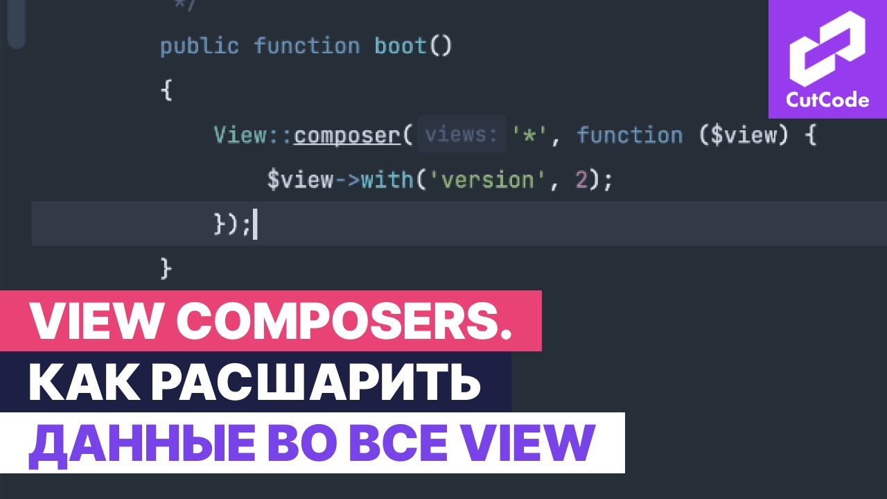 "В сегодняшнем уроке из рубрики ""для тех, кто не знал"" мы поговорим о том, как отправить какие-либо данные (переменные) во все view (ну либо в определенные view). Этот метод часто применяется в проектах, поэтому будет полезно! #composers#laravel#cutcode --------------------------------------------------------------------------------- Станьте спонсором канала, это очень модно и помогает каналу: https://www.youtube.com/c/cutcoderu/join ❗️❗️❗️как делать сложные сайты на laravel? Это просто с cutcode! Поддерживай мой проект - https://cutcode.dev/?utm_source=rt ???Мой помощник Тэйлор готов выдать тебе подарок. Забирать тут - https://cutcode.dev/chat-bot?utm_source=rt --------------------------------------------------------------------------------- ⏰ Таймкоды: 00:00 Введение 01:09 Передача переменной во все view 02:27 Передача переменной в определенные view 08:18 Подведение итогов Всех поклонников Laravel я приветствую на канале Cutcode! Сегодня мы рассмотрим простую тему, но вы просили ее осветить в комментариях и это рубрика как раз служит таким целям. Мы поговорим о том, как отправить какие-либо данные во все view, ну либо в определенные view - это довольно частая практика и сейчас мы ее разберем. Но для начала я хочу научить вас магии, которую я использую повседневно - а именно возможностью заглядывать в документацию. Вот как раз у нас есть задача отправить какую-либо переменную вовсе view и мы открываем необходимый раздел документации. И что видим? Отправить данные вовсе view немного английского, либо можно воспользоваться переводчиком. Далее нам необходим AppServiceProvider, далее нам необходим фасад view и метод Share. И далее мы здесь первым параметром указываем ключ переменной, которая будет доступна во всех View. И соответственно значение. Давайте посмотрим как это работает на примере. Откроем AppServiceProvider, воспользуемся фасадом view, вызовем метод share и пусть будет переменная version (версия) - текущая версия нашего проекта и значение будет 2. Далее откроем стартовую view velcome и здесь попробуем отобразить эту переменную. Окей. Вернемся в браузер, обновимся и видим здесь в уголке как раз заветную двоечку. Давайте я сделаю заголовки, чтобы мало ли кому-то будет не видно. Окей думаю теперь видно - вот она двоечка. Я также создал еще несколько тестовых вьюх: тест, тест 2, чтобы также продемонстрировать что переменные передаются во все view. Давайте откроем - здесь я убрал стартовый контент и тест 2. И попереходим, посмотрим что везде есть эта переменная. Здесь мы уже убедились что все хорошо, идем далее - test. Все ещё видим нашу двоечку и второй url test/test2 - и как видим что эта переменная у нас передается во все view. --------------------------------------------------------------------------------- ? делитесь этим видео с друзьями: https://www.youtube.com/watch?v=sf3lX-rZu98 https://zen.yandex.ru/video/watch/62260d5ccf6b7a18377c0b4c ? подпишитесь на YouTube-канал: https://www.youtube.com/c/CutCodeRu?sub_confirmation=1 ? Курс по Laravel с нуля: https://www.youtube.com/watch?v=phTSw6XDATw&list=PLTucyHptHtTkUbXaikXEmCWL8GradRx9I View Composers. Как расшарить данные во все view в Laravel --------------------------------------------------------------------------------- ? наш сайт: https://cutcode.dev/?utm_source=rt ? наш instagram: https://www.instagram.com/cutcoderu/ ? Наш telegram-канал: https://t.me/laravel_cutcode"