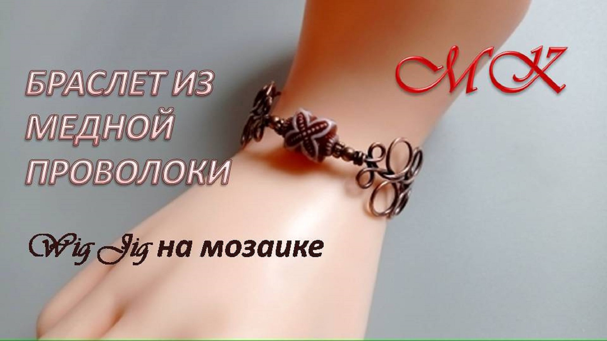 БРАСЛЕТ из медной проволоки с декоративной бусиной. Wig Jig на мозаике.