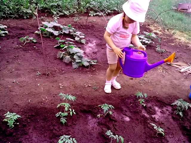 Поливаем помидоры. Май 2014