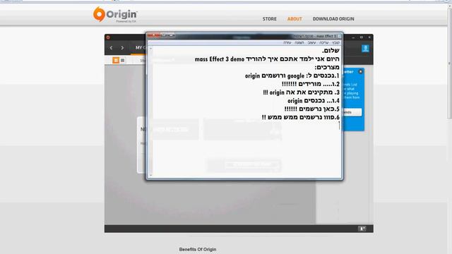 שלום היום אני רציתי ללמד איך להוריד את אה mass Effect 3 demo המשחק החדש יצא ממש ממש ב 2012 תהנווו ותגיבווו בבקשה לכך לי מלא מלא מלא זמן זה היה קשה אבל עשיתי את זה בסוף