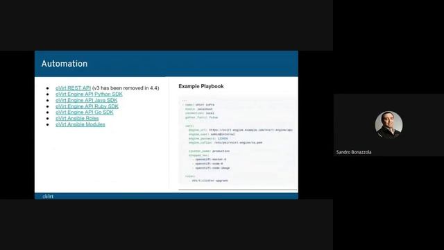 Sandro Bonazzola presenting "oVirt and its community" at oVirt 2020 online conference (https://blogs.ovirt.org/ovirt-2020-online-conference/)