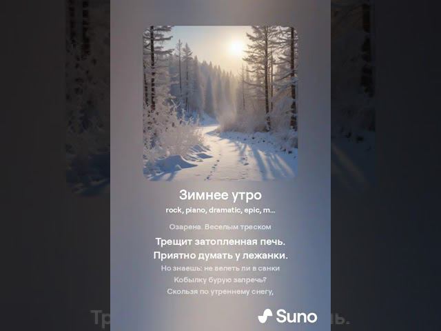 Зимнее утро Мороз и солнце; день чудесный! Еще ты дремлешь, друг прелестный — Пора, красавица, проснись: Открой сомкнуты негой взоры Навстречу северной Авроры, Звездою севера явись! Вечор, ты помнишь, вьюга злилась, На мутном небе мгла носилась; Луна, как бледное пятно, Сквозь тучи мрачные желтела, И ты печальная сидела — А нынче… погляди в окно: Под голубыми небесами Великолепными коврами, Блестя на солнце, снег лежит; Прозрачный лес один чернеет, И ель сквозь иней зеленеет, И речка подо льдом блестит. Вся комната янтарным блеском Озарена. Веселым треском Трещит затопленная печь. Приятно думать у лежанки. Но знаешь: не велеть ли в санки Кобылку бурую запречь? Скользя по утреннему снегу, Друг милый, предадимся бегу Нетерпеливого коня И навестим поля пустые, Леса, недавно столь густые, И берег, милый для меня. 1829 г. А.С. Пушкин. Музыка и вокал: Suno AI