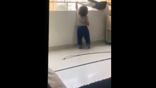 Умная кошка отогнала ребёнка от края балкона