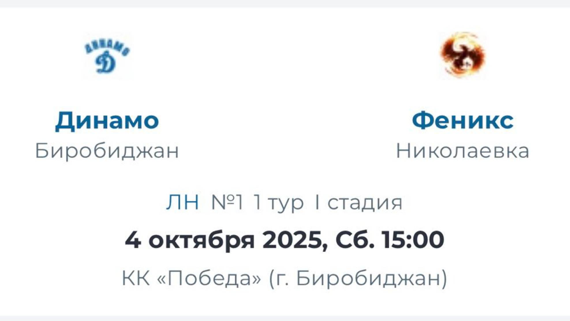 В матче-открытии нового сезона Ночной Хоккейной Лиги а дивизионе "Лига Надежды" на лед выйдут команды "Динамо" (Биробиджан) и "Феникс" (п. Николаевка). Давние и принципиальные соперники, которые всегда претендуют только на победу.