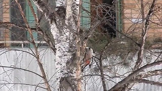 Дятел белоспинный, пгт. Лучегорск, 19 марта 2010 г. Съёмка Динаиды Целовой.