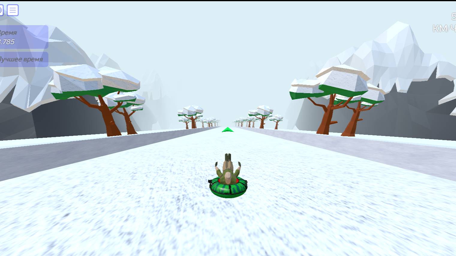 Онлайн игра Спуск на тюбинге. В игре предстоит пройти на время 9 уровней, чтобы установить личный рекорд и посоревноваться в скорости с другими игроками.