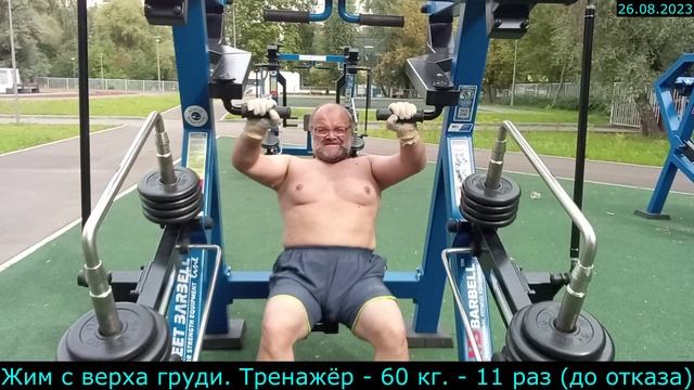 26.08.2023 - Жим с верха груди. Тренажёр - 60 кг. - 11 раз (до отказа)