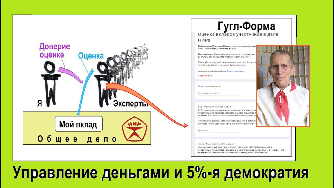 Громыко Г.О, - Доклад на общей встрече в разделе "Экономика" в "НИР-Конкурс-разработка 2023". Все предыдущие варианты этого доклады Громыко Г.О. - Раздел "Экономика" Управление деньгами или 5%-я демократия Видео - 1:00:56 - https://youtu.be/QGooT_5g3aM Текст, 2 стр. - https://docs.google.com/document/d/1dLwVqA4hNiCE38z7yKMvDDyhSnyoNX6Bz37cQ4a9jmc/edit?usp=sharing Ф о р м а о ц е н к и в к л а д о в https://forms.gle/eTpdrpDRMz2bE5Nx6 Раздел "Социум" ЭкоСеть/НИР - действующая модель нового социума Видео - 23:04 - https://www.youtube.com/watch?v=OCVoUPN7pOE&t=159s Текст, 2 стр. - https://docs.google.com/document/d/1DxqKNHeQ-rFPi-eUuqy9BHCjfAH-X8DyE9EEXDgJS-I/edit?usp=sharing Раздел "образование" Смена парадигмы образования Видео - 16:01 - https://youtu.be/MwGVKfKqDjw Текст, 2 стр. - https://docs.google.com/document/d/1L-xXfNRvAIMw9kb0nnm0WyyDfNI3ux2BEQw4fG5JFbw/edit?usp=sharing === Ссылки на группы Телеграм - НИР - Действующая модель нового социума https://t.me/+AsDleWWhqRg1NzAy Конкурс-разработка НИР 2023 https://t.me/+cfLXymx-gsAxMTky Сайт - НАРОДНЫЙ ИНСТИТУТ РАЗВИТИЯ https://t.me/mirunir === Другие сопутствующие ссылки - Описание ЭкоСети - https://sites.google.com/view/ekoset Там можно пройти в меню на "Управление" и скачать книгу Фредерика Лалу "Открывая организации будущего" или посмотреть филь про Мандрогон в Испании. === Разговоры - с Александр Васянин про алгоритм вычисления репутации - Разговор-1 28:20 - https://www.youtube.com/watch?v=AQY2LpN-e3E&t=703s Разговор-2 - 51:19 - https://www.youtube.com/watch?v=YpqPhfn5hio&t=2345s И с Денис Решетов, автором Слон и Жираф - 01:06:39 - https://www.youtube.com/watch?v=uvIKRCx_ckI&t=180s === Оргпроект Школы Радости - https://docs.google.com/document/d/1KZdPcRZjGQRbzcmY9QJ8SD1oZNv7by9pPsp5GyThutc/edit?usp=sharing ТГ-группа Школы радости - https://t.me/+Aj0CY63HU0QxNjQy === Плэй-лист видео по Школа Радости-161" - https://youtube.com/playlist?list=PL949ECk7DvmQUY9mr2a9IVW_j_gHW-OrS === Связаться с Громыко Григорий Олегович можно так - Телеграм - https://t.me/GrigorijGromyko ВКонтакте - https://vk.com/id23067191 Фэйсбук - https://www.facebook.com/grigorij.gromyko === Громыко Г.О. работает по теме ЭкоСеть - группы в сетях - Телеграм - https://t.me/+b-sVwBCV61tmMTQ6 ВКонтакте - https://vk.com/ecoset_ludi_i_dela Фэйсбук - https://www.facebook.com/groups/ekosetj