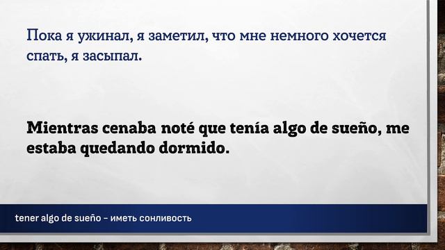 Урок основан на эпизоде подкаста взятом на сайте https://www.spanishpodcast.net Полная ссылка на эпизод подкаста с транскрипцией: https://www.spanishpodcast.net/spooky-spanish-story-learn-spanish/ Полная ссылка на аудио файл эпизода: https://ia601701.us.archive.org/23/items/suedelacasspespaueryyryw8383sjjjs447sceepesp/suedelacasspespaueryyryw8383sjjjs447sceepesp.mp3?_=1 Данный материал предназначен исключительно в образовательных целях. Цель – заставить мышление учащегося формировать фразы, части фраз, на испанском языке. Каждая фраза повторяется три раза. Повторения происходит не подряд, а с некоторым "смещением", заставляя всё время мысленно переключаться на другую фразу. Пауза между фразами служит для того, чтобы вспомнить хотя бы одно слово, часть фразы или всю фразу на испанском языке. Чем длиннее фраза на русском языке – тем длиннее пауза до фразы на испанском языке. Достаточно, если человек самостоятельно начинает формировать хотя бы кусочки фразы, некоторые слова. Данный вид упражнений не стоит делать более одного часа за один раз. Достаточно прослушивать такие упражнения в фоновом режиме: замимаясь домашними делами, находясь в дороге или на прогулке, занимаясь спортом. Чтобы выучить любой язык необходимо «провести с ним» 10 000 часов. #испанский #испания #слова #фразы #aprender #español #españa #español #испанскийязык #испанскийбесплатно #испанскийэффективно #учимиспанский #испанскийучить #shadowing #ShadowingTechnique #Lerntechnik #произношение #грамматика #subjuntiv #expresiones #shadowingmethode #эффективно #españolonline #españoloffline #aprenderespanolonline #pimsleur #paulpimsleur Слова и выражения из этой части подкаста: ================================================ aguantar - выдержать, терпеть atraer - привлекать, заманить conducir - вести машину, быть за рулём машины el asunto - вопрос, дело, проблема, тема el bache - выбоина, кочка, ухаб el cartel - плакат, табличка, знак, вывеска el depósito - бензобак, склад, депозит el destino - пункт назначения el estómago - желудок estar cansado - быть уставшим la carretera principal - главная дорога la emisión - трансляция, вещание, эфир la maleta - чемодан la visibilidad - видимость, прозрачность parar - останавливаться preferir - предпочитать rodeado - окружённый, вокруг sonar - звучать, прозвучать, звонить tener algo de sueño - иметь сонливость tengo un don - у меня есть дар, талант terrorífica - ужасающий, страшный, жуткий un filete de pollo - куринное филе