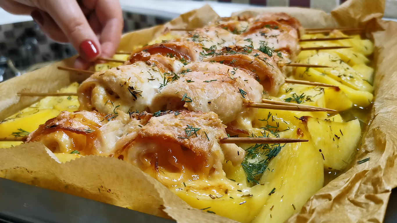 Готовлю ужин из картошки и куриной грудки под мокрой бумагой. Сворачиваю рулеты из курицы, укладываю на картошку и накрываю бумагой. Рецепт на каждый день и на праздничный стол можно. Рулетики из куриного филе с беконом и сыром на шпажках, как маленькие шашлычки на запеченной картошке. Ужин в духовке, просто и оригинально. Рецепт подойдет и на праздничный стол. Ингредиенты: Картошка - 800-900 гр Куриное филе - 600-700 гр Бекон - 200 гр Сыр - 200 гр Растительное масло - 3 ст.л. Соль и ароматные травы - по вкусу *************************************************************************** Одноклассники https://ok.ru/group/60739114565686 Яндекс Дзен https://zen.yandex.ru/rozovybaklazan Facebook https://www.facebook.com/groups/30739... Ютуб https://www.youtube.com/c/РозовыйБаклажан/featured *************************************************************************** Музыкальная композиция: Arpy Автор: Dan Henig Ссылка на исполнителя: https://www.youtube.com/channel/UCK0ePBXwnDZuZjF6xy3l77A Музыка, продвигаемая музыкальной библиотекой Happy Soul Music Library https://happysoulmusic.com https://happysoulmusic.com/audio/arpy_-_dan_henig-mp3/ #ужин #праздничныйстол #изкартошки #изкуринойгрудки #изкуриногофиле #изкурицы #рецептужинавдуховке #рецептужинанановыйгод #куриныерулеты #рулетыизкурицы #рецептнановыйгод #курицарецепт #картошкарецепт #чтоприготовитьнапраздник