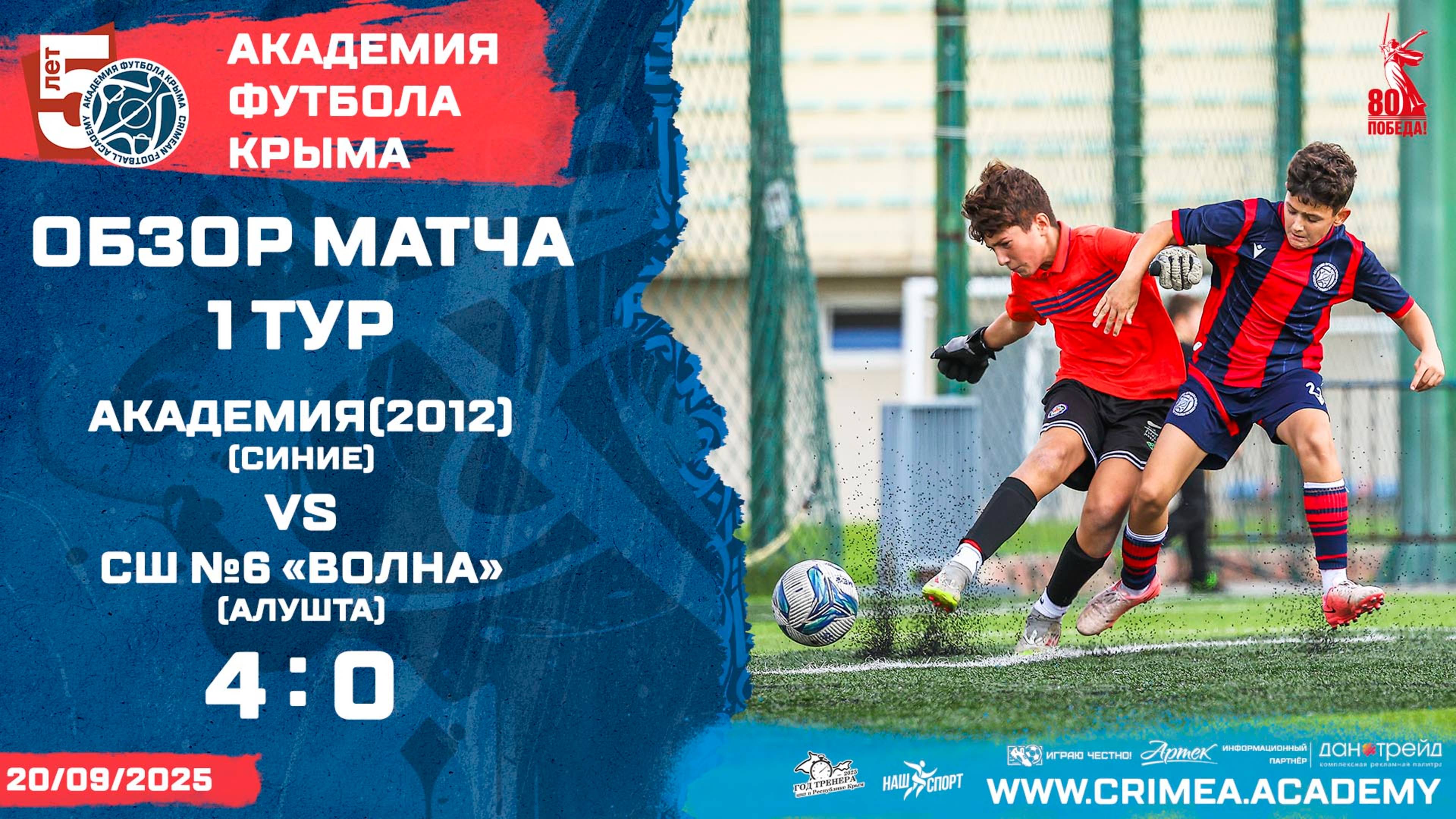 Обзор матча | АФК (2012)-синие - СШ №6 "Волна" (Алушта) | ДЮФЛК (2012) 25/26 | Группа "Б" | 1 тур
