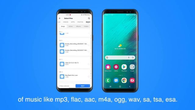 1. Open SHAREit Lite, click "Send". 2. Go to the "MUSIC" tab, all music files over 500KB in your phone will be shown here. SHAREit Lite supports transfer multiple kinds of files: videos, photos, music, documents, apps, etc. Also, SHAREit Lite supports transfer multiple formats of music like mp3, flac, aac, m4a, ogg, wav, sa, tsa, esa. 3. Select the music file you want to transfer to your friend. Then click SEND. What your friend need to do is open SHAREit Lite and click "Receive". 4. Scan your friend's QR code to connect. The second method to connect with your friend's device is to tap the avatar. 5. File transferred. Download SHAREit Lite: https://play.google.com/store/apps/details?id=shareit.lite