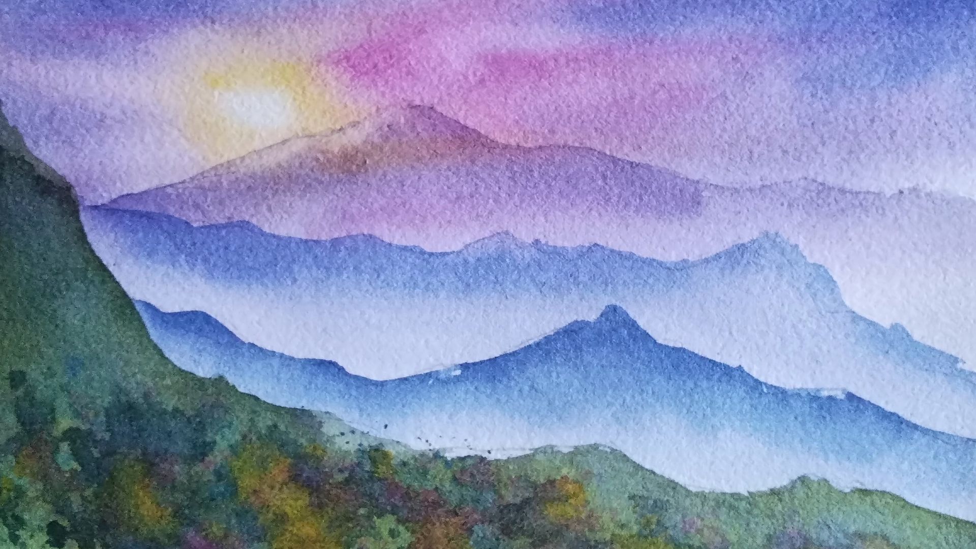 Акварель для начинающих. Урок 2. Закат в горах