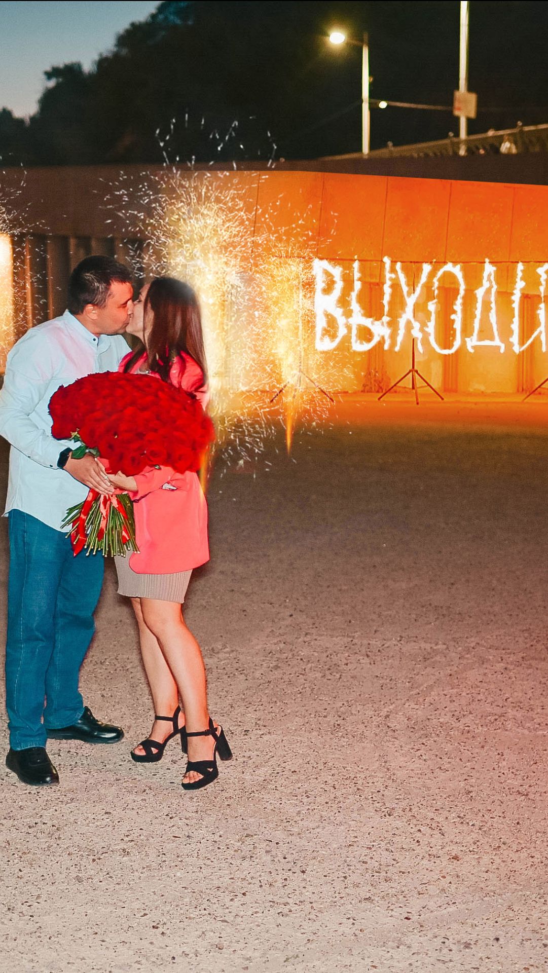 Огненное предложение руки на набережной с пиротехническими буквами!