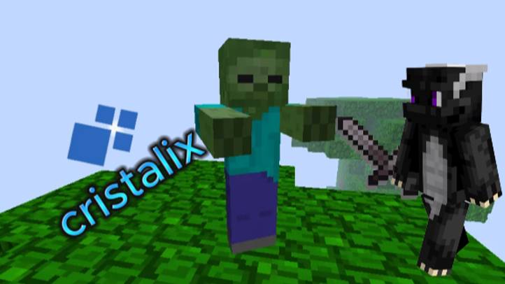 сражаюсь с мобами в майнкрафт кристаликс