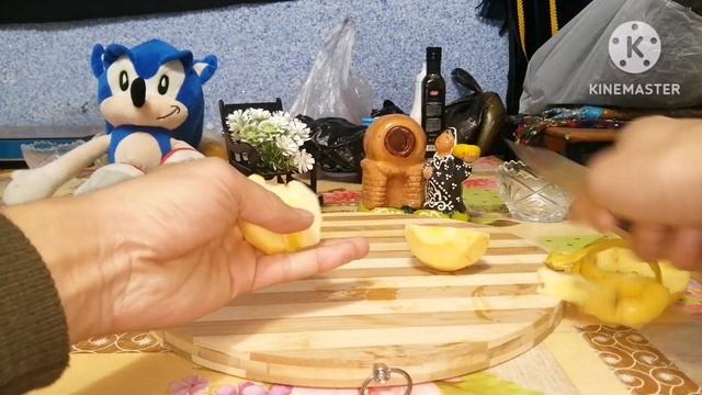 Sonic wants to eat an apple. I give him an apple.