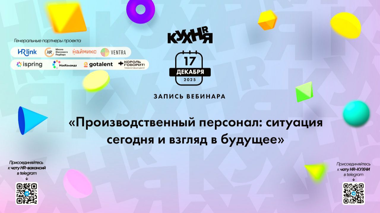 Присоединяйтесь к чатам и каналам HR-КУХНИ в телеграм: - Основной чат HR-КУХНИ в телеграм - https://t.me/+tYgAH0PgPQVkOWIy - Канал HR вакансий в телеграм - https://t.me/+CMNAN2u1hjo3M2Ri - Канал HR-EVENTS в телеграм - https://t.me/hr_kitchen - Канал HR JOURNAL в телеграм - https://t.me/hrkitchenjournal Полезные ссылки: - Каталог HR решений - https://hrkitchen.ru/exhibition - График конференций, бесплатных вебинаров, а также бесплатные курсы – https://hrkitchen.ru/ - Стать спикером HR-КУХНИ - https://hrkitchen.ru/speakers - Подписаться на полезную e-mail рассылку от HR-КУХНИ (новости, гайды, чек-листы, подарки от партнеров) - https://hrkitchen.ru/subscribe