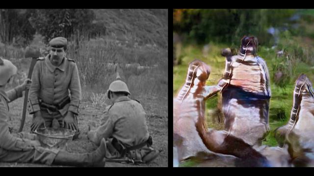 My favorite #GauGAN film experiment. Chaplin is disguised as a tree and the DeepLab AI keeps changing its mind about whether it sees a tree or a person. 🌲🤵?