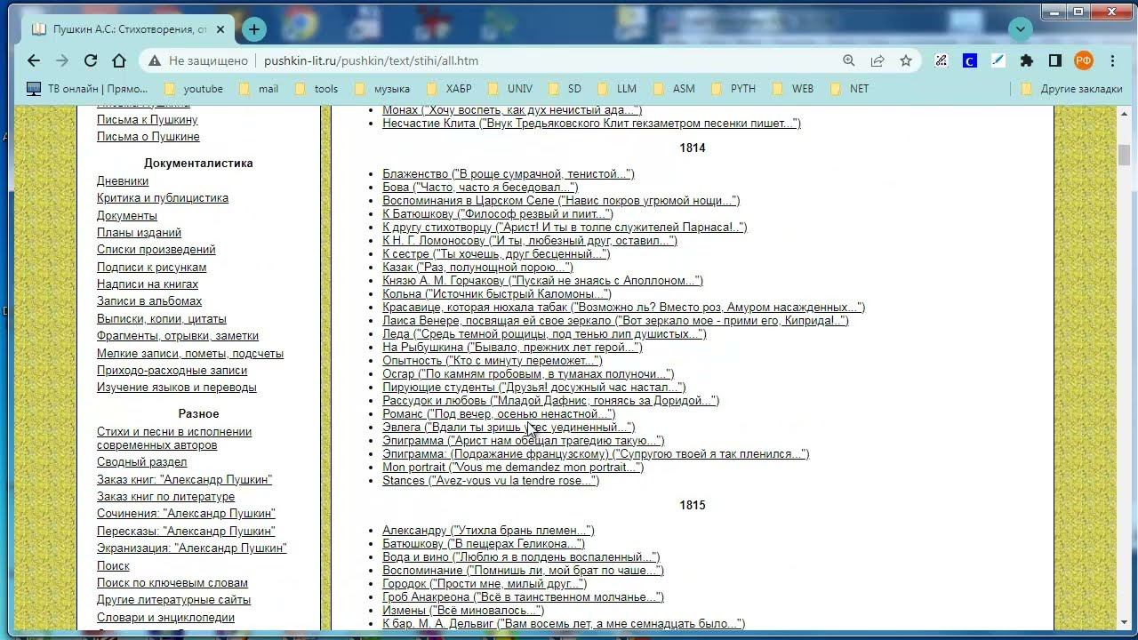 Написана простая программа парсинга сайта со стихами Пушкина, распределенными по годам. Показано, как преодолеть блокировщики парсинга, один из которых довольно интересен. Получен большой корпус данных для последующей математической обработки. исходники программы, как всегда, можно скачать с моего сайта.