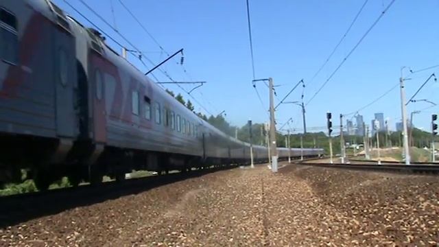 Электровоз ЭП20-018 со скорым дневным поездом №740 Москва - Брянск Снималось на Видеокамеру Sony DCR-SR65 Снято в Поезде перегон Москва-Сорт - Матвеевская