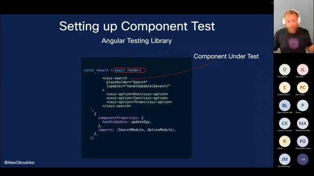 In this session, Alex goes over different types of testing, the whys and the hows - testing Angular Components & Services. SIFERS by Moshe Kolodny: https://medium.com/@kolodny/testing-with-sifers-c9d6bb5b362 Component Harnesses: https://material.angular.io/cdk/test-harnesses/overview Jest-auto-spies by HiRez.io and Shai Reznik: https://github.com/hirezio/auto-spies/tree/master/packages/jest-auto-spies#jest-auto-spies Also, check out a talk by Lara Newsom: https://youtu.be/p-6z0Ee2qmI