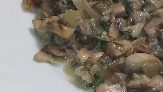 Ингредиенты: Грибы шампиньоны - 400 г. Лук репчатый - 1 шт. Сметана 2-3 ст.л Масло сливочное 20 г. Масло растительное 20 г. Укроп Сушённый чеснок Соль, перец по вкусу Приятного аппетита!