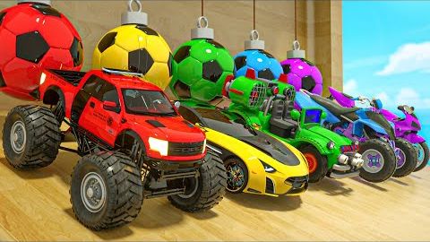 Колеса на автобусе - пять маленьких футбольных мячей и гигантский грузовик-монстр-трак -