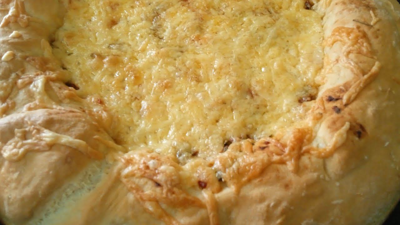 Пицца -пирог из дрожжевого теста с мясной начинкой!