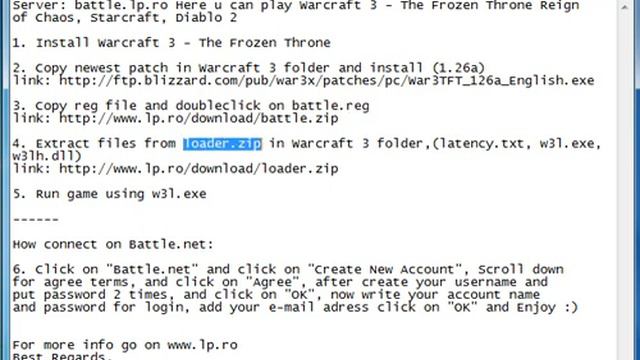 link: http://ftp.blizzard.com/pub/war3x/patches/pc/War3TFT_126a_English.exe link: http://www.lp.ro/download/battle.zip link: http://www.lp.ro/download/loader.zip