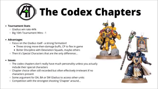 Let's rank the most and least powerful Space Marine chapters in Warhammer 40K 10th Edition -- Patreon Page -- https://www.patreon.com/auspex -- SubscribeStar -- https://www.subscribestar.com/auspex -- Buy Warhammer 40K miniatures here -- UK - Element Games: http://elementgames.co.uk/?d=10426 USA - Noble Knight Games: https://www.nobleknight.com/SC/Warhammer-40000?awid=1317 or Amazon also in the USA - https://amzn.to/303klKD Australia - Gap Games - https://bit.ly/3N8VBtj EU - Kutami - https://t.adcell.com/click.php?bid=274007-106951 -- Buy 3D Printers from Elegoo Here -- https://shareasale.com/r.cfm?b=1680329&u=3447346&m=104244&urllink=&afftrack= Discount Code for $10 off: MRT10OFF -- Social Media -- Facebook: https://www.facebook.com/Auspex-Tactics-103129707773165 Discord: https://discord.gg/RrvQurN -- Subscribe to Auspex Tactics -- https://tinyurl.com/yc69mguy 0:00 Intro 2:20 Tier 3 2:45 Blood Angels 4:55 Space Wolves 6:48 Dark Angels 8:38 Divergent Gladius Paradox 10:33 Tier 2 10:49 The Codex Chapters 15:48 Black Templars 17:54 Tier 1 18:17 Deathwatch 21:21 Outro
