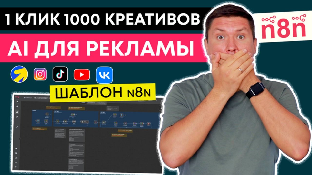 👉 База: Шаблоны, промпты, образы и инструкции для ИИ в удобном Telegram: https://r.bothelp.io/tg?domain=ai_zuevich_bot&start=c1745059446578-ds Разборы AI сервисов, промокоды и подробные видео-уроки. Название: Рекламный ИИ Агент: создает 1000 рекламных креативов из 1 картинки (n8n + ChatGPT image generator) 00:00 - Что такое AI агент для рекламы 01:17 - Демонстрация работы через Telegram 02:58 - Автоматическая загрузка в Google Drive 04:47 - Анализ изображений через ChatGPT 06:58 - Клонирование рекламы конкурентов 08:15 - Пошаговое создание AI агента 09:32 - Настройка Google Drive интеграции 13:05 - Настройка OpenAI для анализа 15:21 - Создание промптов для генерации 18:30 - Настройка циклов обработки 22:10 - HTTP запросы к ChatGPT API 25:02 - Настройка аутентификации OpenAI 27:40 - Редактирование изображений API 30:45 - Тестирование генерации креативов 32:25 - Сохранение результатов в Drive 34:18 - Настройка уведомлений Telegram 36:22 - Различные стратегии промптов 38:15 - Заключение и готовый шаблон Привет, на связи Игорь Зуевич! Представьте: вы нашли крутой рекламный креатив конкурента, и вместо того чтобы заказывать дизайнера за 50 тысяч рублей, вы за 5 минут создаете 100 вариаций этого баннера с помощью AI агента. Звучит фантастически? А я это уже делаю! В этом видео я покажу, как создать AI агента через n8n, который будет генерировать неограниченное количество рекламных креативов из одного исходного изображения. Используя ChatGPT image generator API и автоматизацию рабочих процессов, мы построим систему, которая заменит целый отдел дизайнеров. О чём это видео Я демонстрирую создание полноценного AI агента для автоматизации маркетинга. Делюсь подробной и абсолютно рабочей схемой автоматизации генерации рекламных креативов на основе одного исходного баннера Показываю, как интегрировать OpenAI image generator с n8n, настроить telegram bot для загрузки креативов и создать workflow, который анализирует рекламные объявления и генерирует их вариации. Это не теория – это работающая система, которую я использую в своем бизнесе. Покажу, как с помощью AI (OpenAI, ChatGPT), сервиса n8n и Google Drive можно за пару минут получить сразу несколько уникальных, готовых к тесту баннеров. Всё делается без участия дизайнера, человеческих ошибок и многонедельных правок — процесс максимально автоматизирован и прост. Что вы узнаете из этого видео: – Как создать AI агента в n8n, который генерирует рекламные креативы в промышленных масштабах; – Секретные промпты для ChatGPT, которые анализируют изображения лучше любого дизайнера; – Как автоматически анализировать любой баннер и превращать его описание в промпты для генерации новых вариантов; – Как за 1 клик получать десятки разных вариантов баннеров для A/B тестов; – Пошаговая настройка telegram бота для загрузки и обработки рекламных баннеров; – Как интегрировать ChatGPT image generator API для создания безлимитного количества вариаций; – Автоматизация всего процесса: от загрузки креатива до получения готовых баннеров в Google Drive; – Как интегрировать Telegram, Google Drive и n8n для полноценного цикла автоматизации; – Две стратегии генерации: максимально похожие копии и креативные переработки исходника; – Какие промпты использовать для получения максимально креативных или похожих вариантов изображений; – Настройка циклов в n8n для обработки множественных вариантов одновременно; – Как экономить на дизайнерах десятки тысяч рублей ежемесячно с помощью автоматизации; – Готовый шаблон n8n workflow, который можно скачать и исп