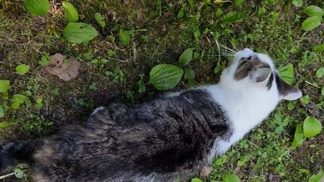 Кошка ест траву