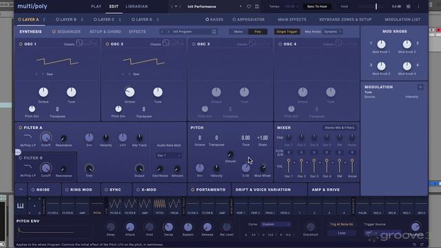 📁 Groove3 Korg Multi/Poly Native: Getting Started 🎬 04. Pitch and Mixer Controls Learn how to blend oscillators with Mixer section and how pitch controls are used for adjusting tuning of your layers. These sections allow for balancing of your overall oscillators in synth program. Timecodes: 00:00 - Pitch & Mixer Section 01:01 - Setting Key 02:06 - Fine Tuning & Modulation 04:08 - Mixer & Balancing 06:14 - Stereo Mix & Filters 07:45 - Conclusion Playlist: https://rutube.ru/plst/900000 #Korg | #MultiPoly | #Groove3