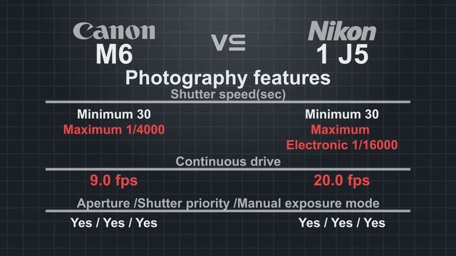It is a quick overview and specs comparison Canon EOS M6 vs Nikon 1 J5 ======================================= "Subscribe and Share" for more Videos https://goo.gl/ITeyLu ======================================= *Music Provided by NoCopyrightSounds https://youtu.be/IIrCDAV3EgI Song: Tobu - Candyland