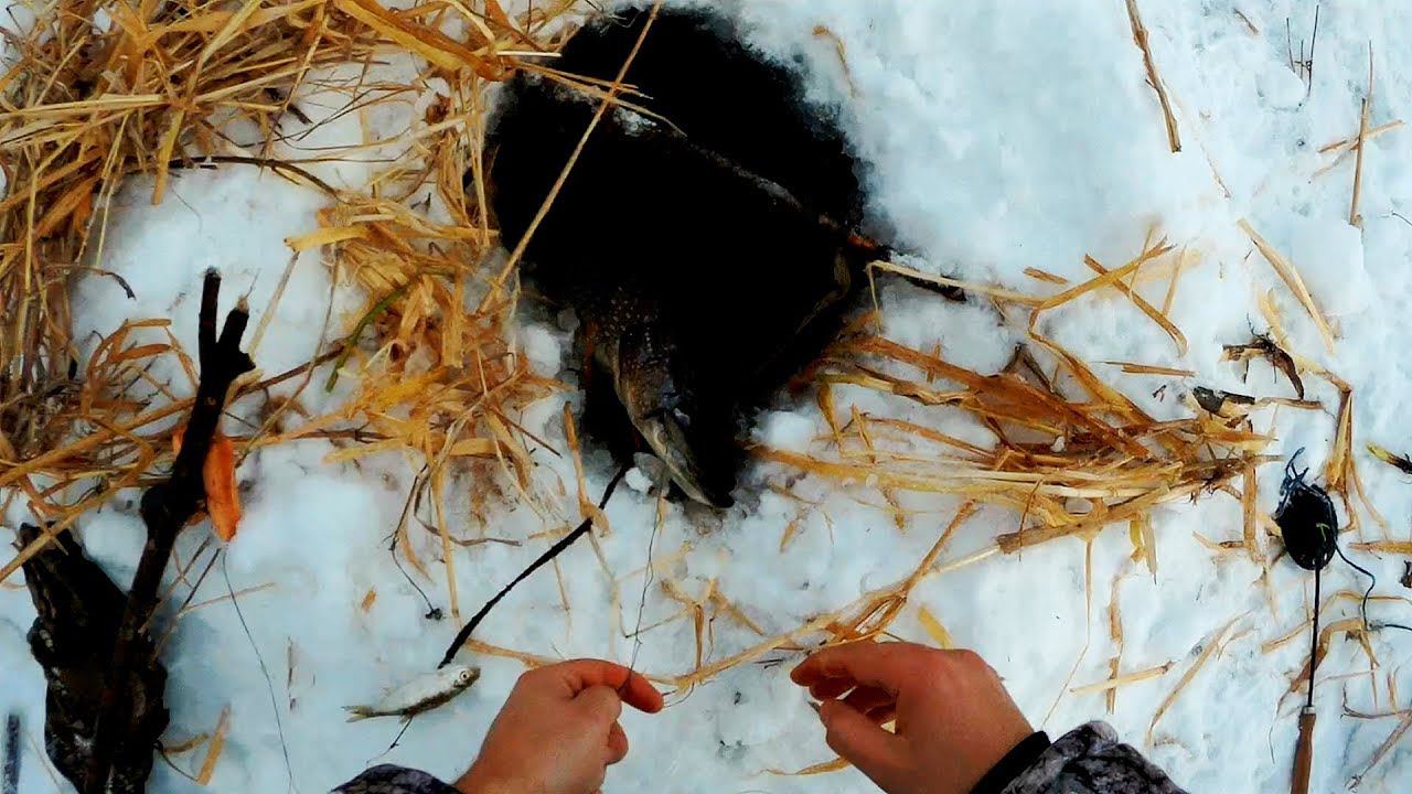 Трофейная щука на зимний перемет на малой реке. Мой зимний рекорд. Хищник на живца #14
