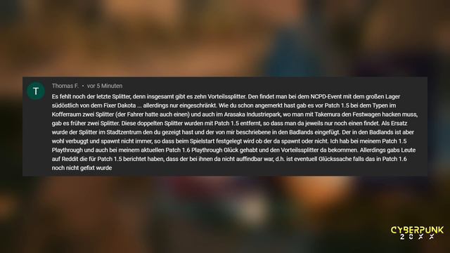 Der LETZTE Vorteilspunkt! Mit etwas GLÜCK einfach in CYBERPUNK 2077 abholen! Nachtrag zum Video "Mehr Perks! Sofort Gratis Vorteil (Perk) Punkte in CYBERPUNK 2077 sichern!": https://youtu.be/Qxfl4psEseE Du möchtest mehr über das Skill System erfahren? 👉https://youtu.be/WWSbMjbGYcw #Cyberpunk2077 #Cyberpunk20xx #WeltenNet ____________________________ ☕KAFFEKASSE☕ https://donate.cyberpunk20xx.de 🐱👤MEIN SHOP🐱👤 https://store.weltennet.de/ ✳️MEINE PARTNER✳️ HOLY Energie Drinks & Tea OHNE Bul_Sh_! https://holyenergy.de/?ref=weltennet&utm_medium=creator&utm_source=creator * DEINE Codes: WELTENNET (10% Rabatt), WELTENNET5 (5€ auf die ERSTE Bestellung) 🌐WELTENNET YOUTUBE KANÄLE🌐 💠 https://www.youtube.com/@cyberpunk20xx/channels 🔵KANÄLE🔵 🔹 Discord: https://discord.gg/BskHb6dGcF 🔹 Twitter: https://twitter.com/WeltenNet ____________________________ * Wenn du etwas über den Link kaufst, erhalte ich eine kleine Provision. Deine Preise ändern sich dadurch aber nicht! Vielen Dank für deinen Support!