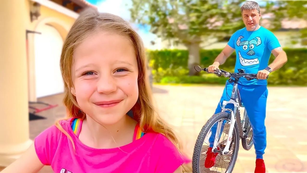 Настя учится кататься на велосипеде. Полезное видео для детей