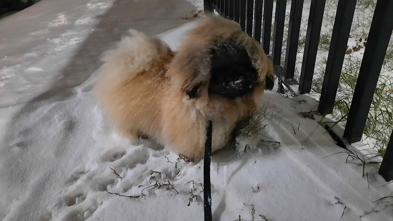 Пекинесу Дендику очень понравилось гулять по снегу.. Чистенько. Лапки и пузико просто будут мокрыми. Важно - нет репейника, который так и старается, при каждой прогулке прилепиться к его шерсти.